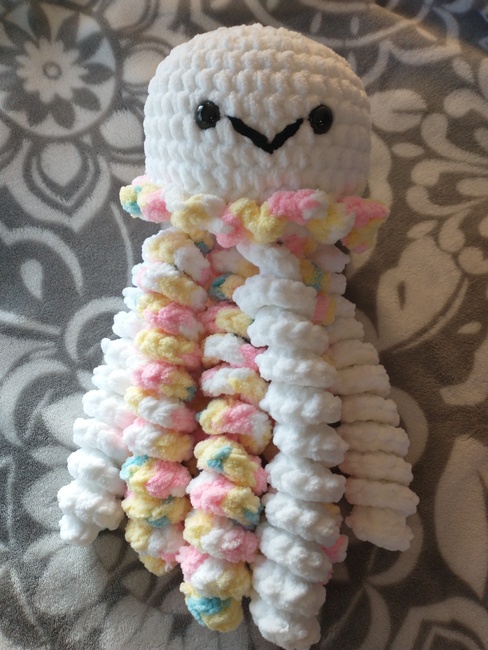 Follow along to create a large jellyfish that is perfect for cuddling. Use any type of plush, blanket, or thick yarn to create your jellyfish. Use any amount of colors to customize it to your liking.