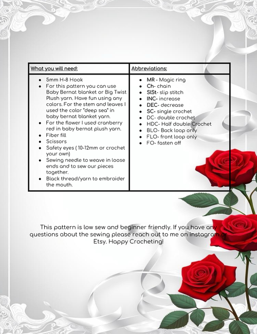 Blooming Roses Crochet Pattern (PDF FILE INCLUDED) - Adorable Plush Flower Amigurumi