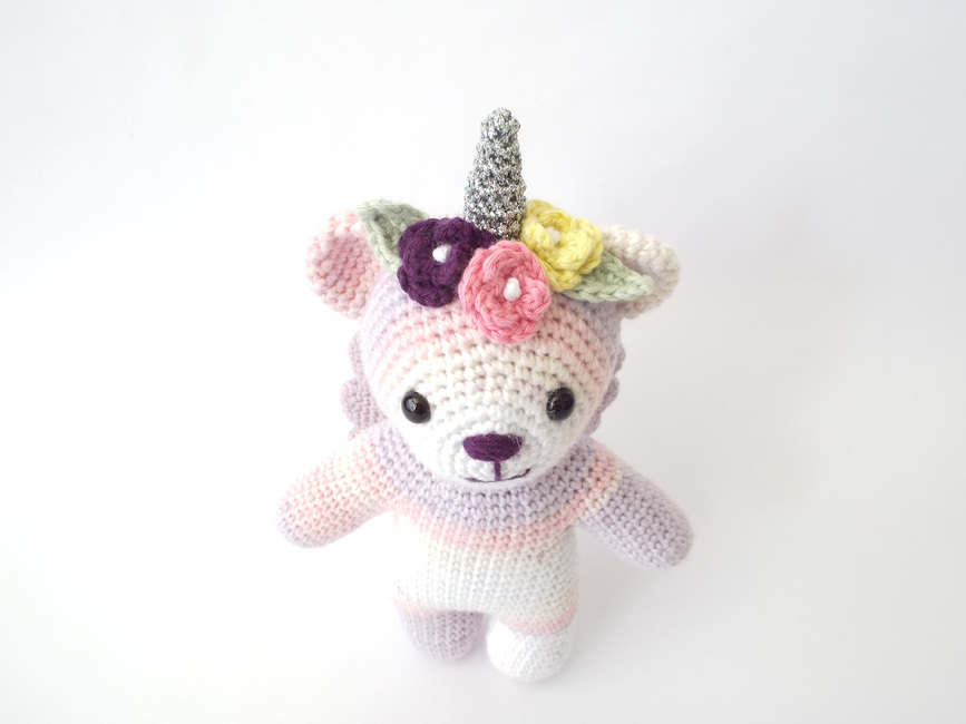 Stuffing A pair of 9mm black safety eyes. White yarn or stranded cotton (embroidery thread) for sewing the centres of the flowers. You could use stranded cotton to make the flowers too, but they would come out a little smaller.