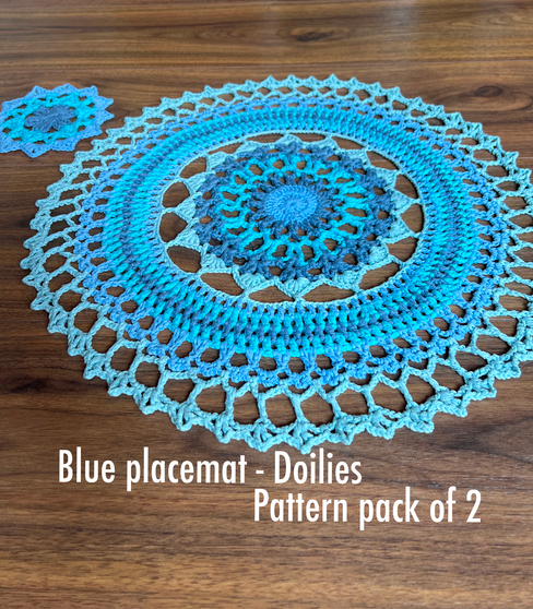 Pack of two placemats doilies. One large one small NOTE: Patterns in this shop are visual. They are shown in symbol charts / diagrams. They are not written.