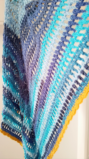 The Blue sunset shawl pattern makes a Clothing. It is a Beginner Crochet pattern.
