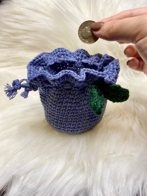The blueberry Coin Purse is also available as a YouTube tutorial (linked in the pattern), so you can follow along visually too!