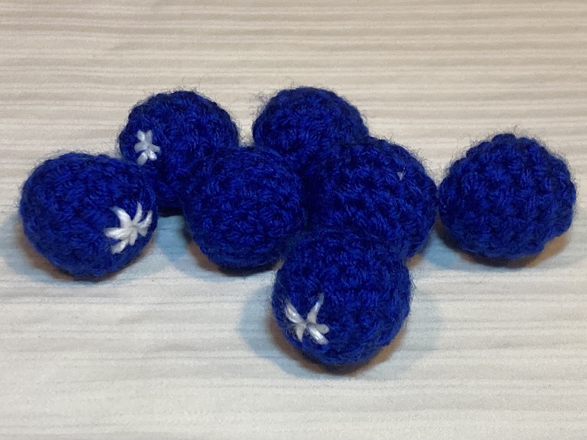Small Crochet Blueberry perfect for a kid's play kitchen.