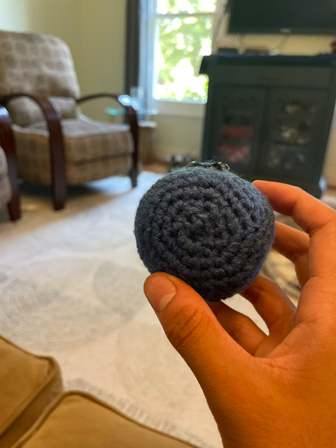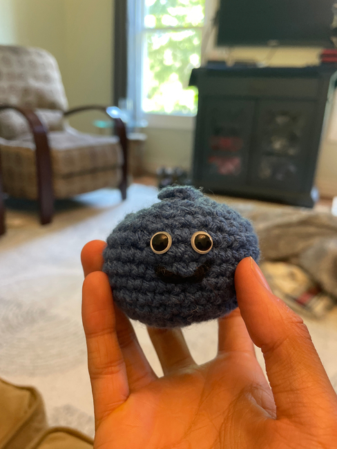 A friend of mine wanted me to make her something and she chose a blueberry. I decided to name him Bob the Blueberry.