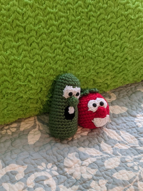 BoomShakalaka Crochet designed the Bob the Tomato and Larry the Cucumber Veggie Tales pattern. Find more of their patterns on their Ribblr shop page.
