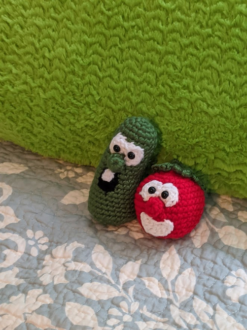 The Bob the Tomato and Larry the Cucumber Veggie Tales pattern makes a Amigurumi. It is a Beginner Crochet pattern.
