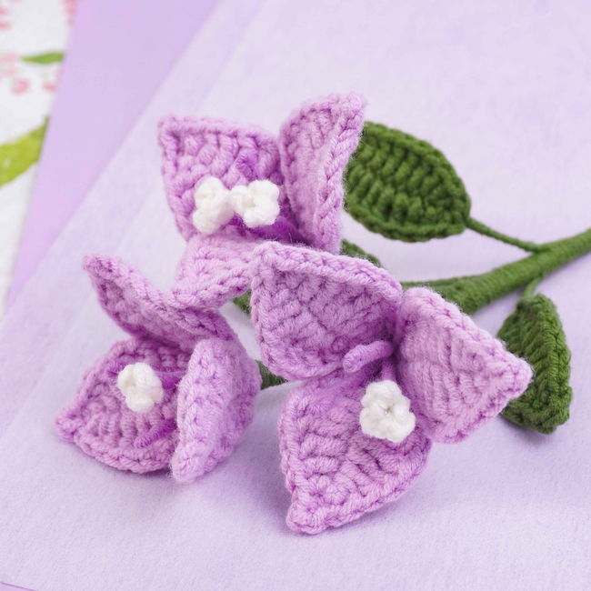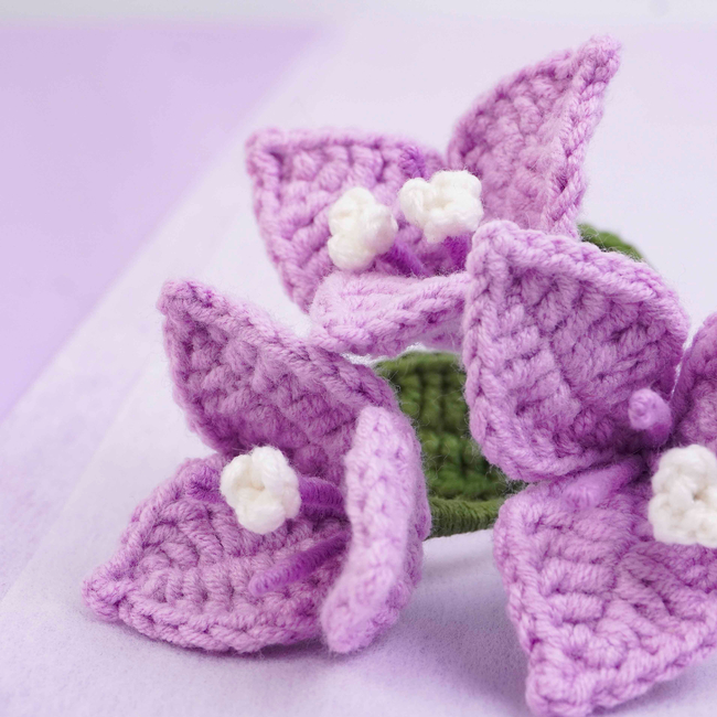 To make Bougainvillea Flower Crochet Pattern you will need: Color: Purple, light purple, white and green, Stitch marker Sewing needle Scissors Craft wire (0.5mm)Floral wire (2mm*35cm)Hot glue gun. Tools required: 2.5mm.