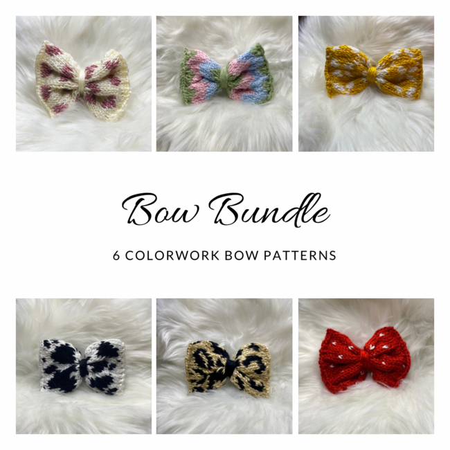 Get 6 colorwork bows in 1 bundle! This bundle features 6 different colorwork knit bow patterns. No matter what your style is, you'll find the perfect accessory in this bundle!