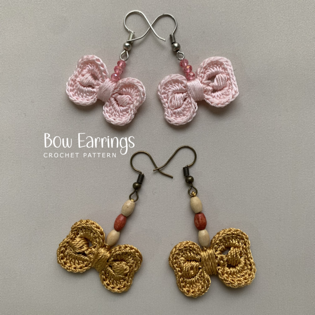 Gem Reward this monthBow Earrings Crochet Pattern Minimalist Handmade Jewelry with Beads