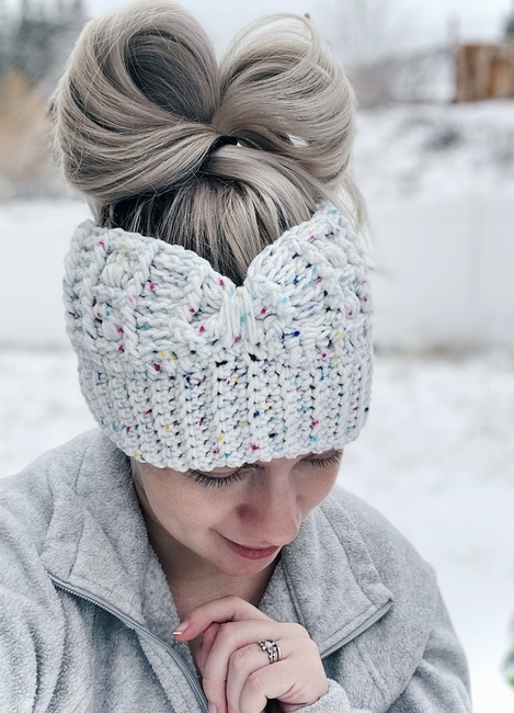 This adorable ear warmer is so simple to make and has such amazing texture! You can leave your ear warmer as is once finished or move on to instructions for scrunching it!