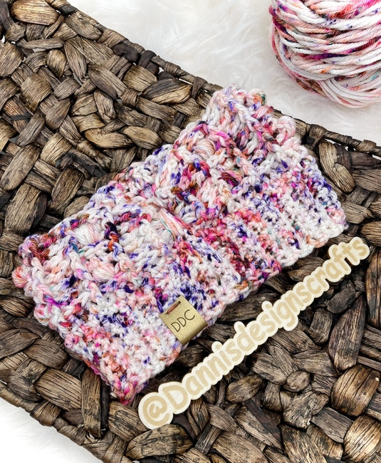 Dannis Designs Crafts designed the Box Wire Ear Warmer pattern. Find more of their patterns on their Ribblr shop page.