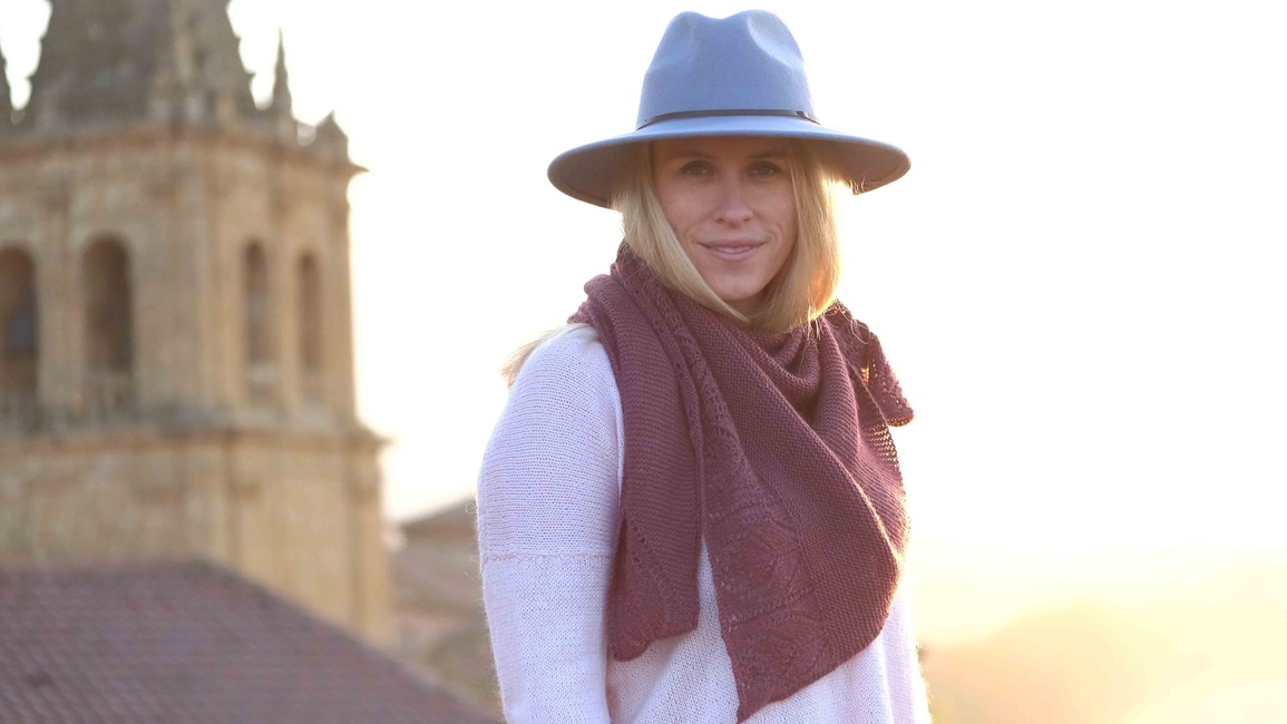 Knit One, Crochet Too designed the Briñas Shawl 2453 pattern. Find more of their patterns on their Ribblr shop page.