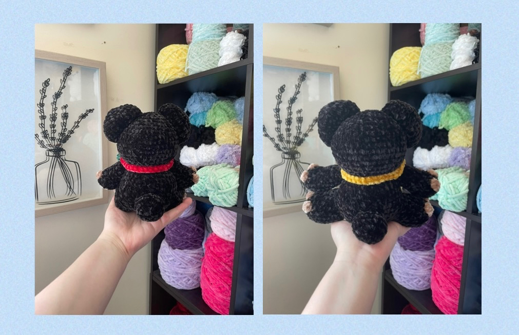 black yarn brown yarn light yellow yarn dark yellow yarn red yarn green yarn