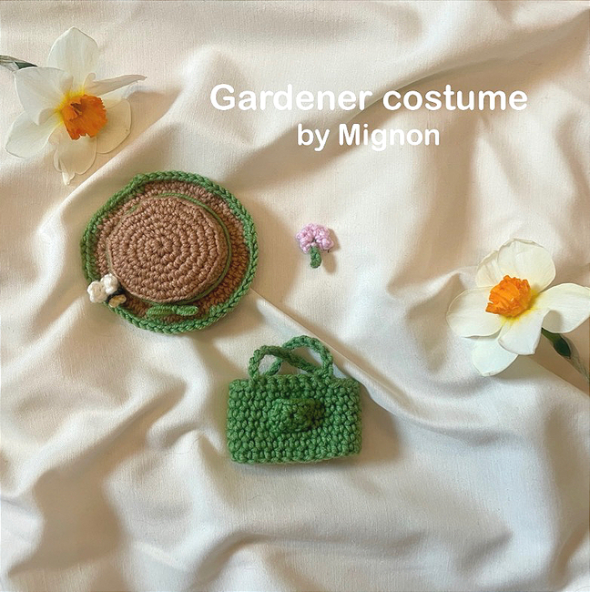 INCLUDED: gardener suit, hat, flower, bee