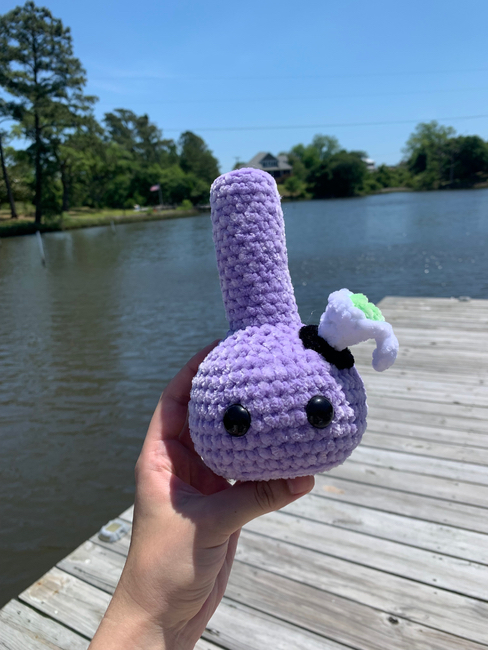 Need a cute quick & easy bubble bong pattern? Look no further! Your prayers have been answered. This is a bong pattern that has complete instructions on how to make the bong, o-ring, bowl piece & nug. This pattern is designed for advanced beginners. Measuring about 7 inches when made with suggested materials.
