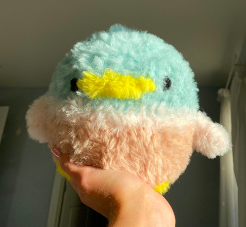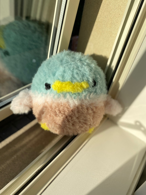 Hi, I'm Bubbles the Duck. I love sitting on the windowsill and watching the sunset. I hope you like my free pattern!