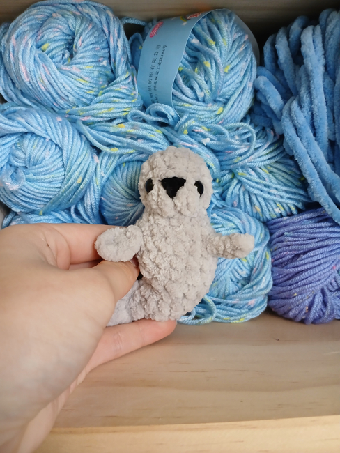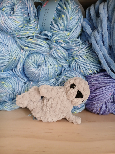 To make Bubbles the Seal you will need: Chenille_, Scrap chenille/acrylic for the nose., Scissors, stuffing, stitch marker, needle, and 10.mm safety eyes. Tools required: I used a 4mm hook, but feel free to use which ever size suits you. (>w.
