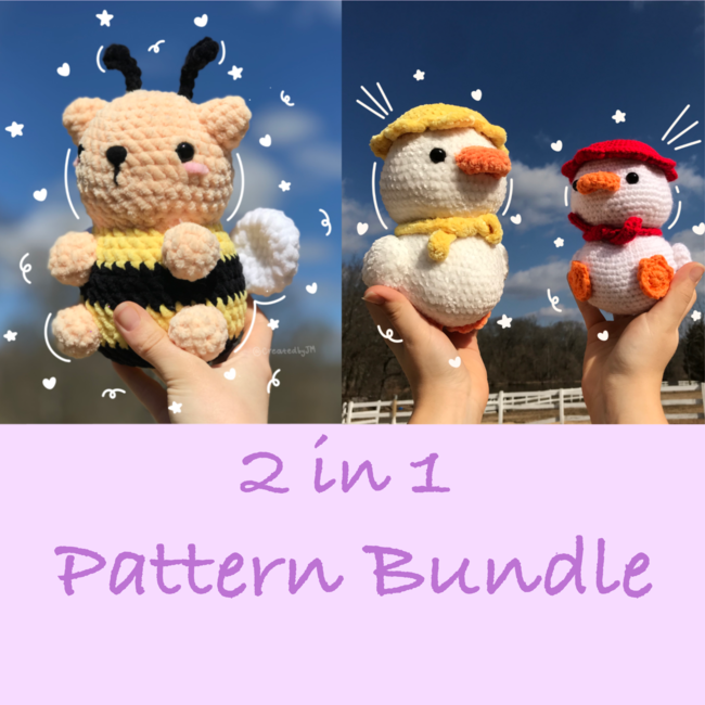 This bundle includes my bumble cat and duck crochet pattern! What are you waiting for? Grab a crochet hook and some yarn, let's get started!