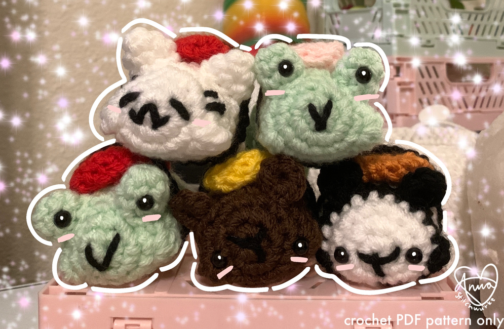 This Bundle includes 3 patterns! They are the Sushi frog, bears, and cat. You can find these patterns separately on my page, but this bundle is a great deal! I hope you enjoy.
