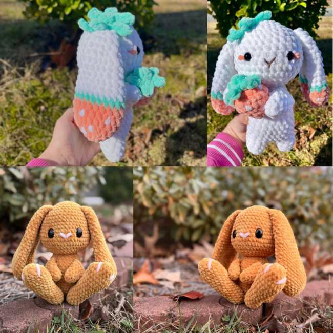Two baby bunnies in one! This bundle comes with my patterns for Loppy the Baby Bunny and Sadie the Strawberry Bunny.