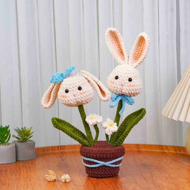 The Bunny Duo Crochet Pattern pattern makes a Amigurumi. It is a Intermediate Crochet pattern.