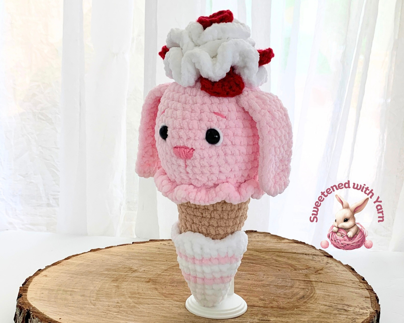 This adorable bunny-shaped ice cream is a truly delightful treat. The cones are available in a variety of animals ... cat, frog, koala, bear, tiger, cow, duck, pig (and more already in the works). Each crochet is a quick, whimsical journey, perfect for market makes or a relaxing project at home.