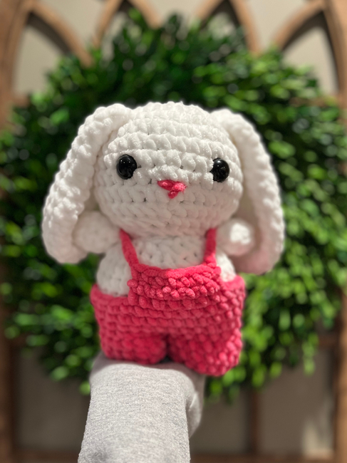 Hi! This bunny in overalls is the perfect pattern as a gift or a cute project to keep for yourself! This pattern is for beginner to intermediate crocheters and uses single crochets, chains, increases, and invisible decreases. Have fun crocheting!