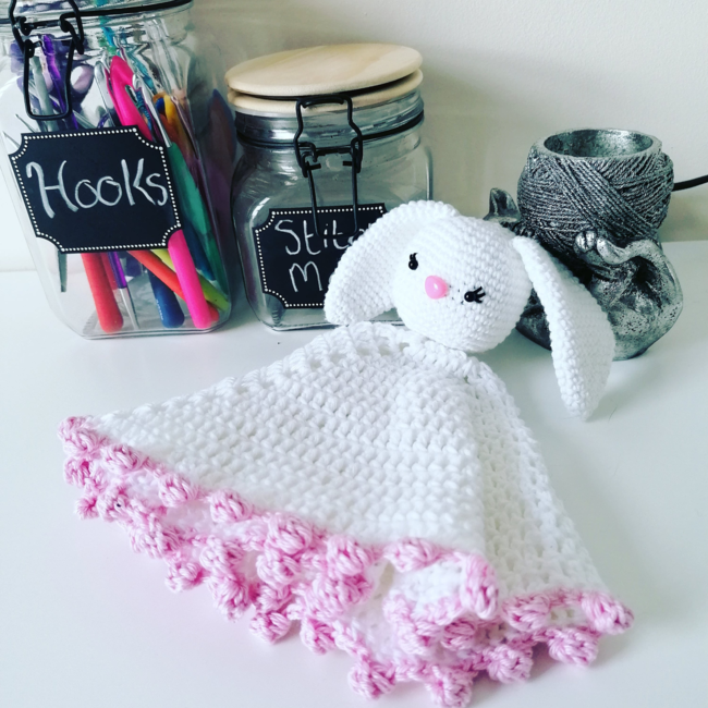 roccobabycrochet designed the Bunny Lovey Blanket pattern. Find more of their patterns on their Ribblr shop page.