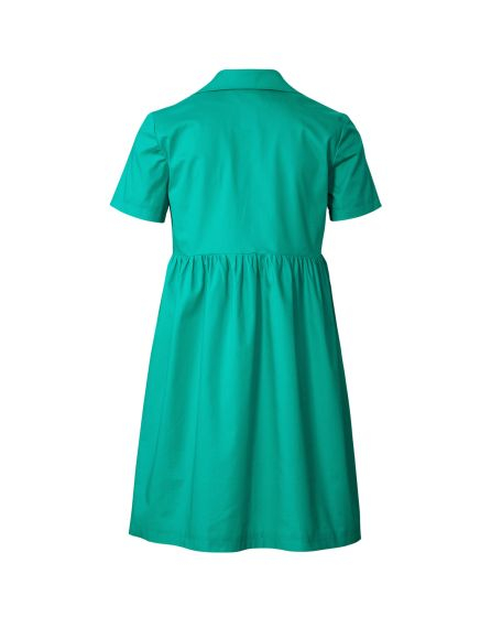 B: The same cut (short skirt, short sleeves), but with a large collar and made from solid-coloured poplin - a high-waisted shirt dress. Super sassy!