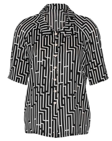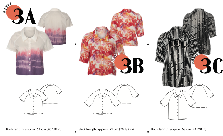B: A short, straight cut, 1/2 sleeves and a relaxed ï¬ t: this summer shirt with a collar works for many ï¬ gure types, occasions and styling partners. Charming detail: buttons in different colours!