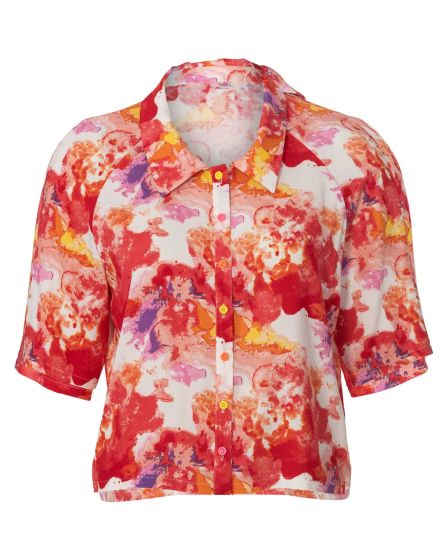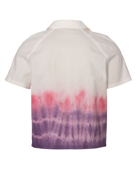 A: Hey: there is only one of these in the whole world! This shirt with short sleeves is not only a sew-it-yourself model. The poplin was tie dyed before cutting out the shirt, creating an attractive lilac-to-pink gradient.
