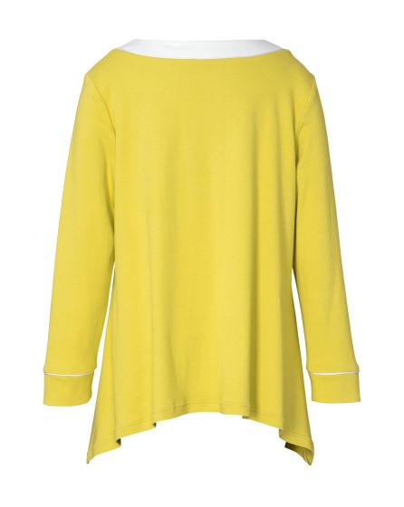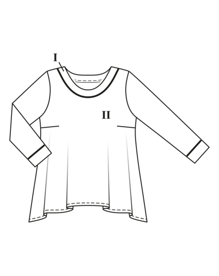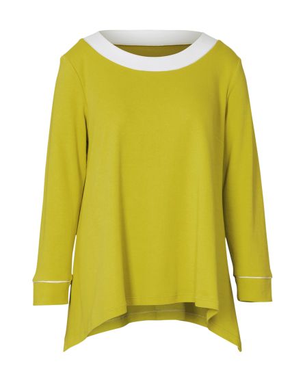 Time a bit tight? With this top, you can quickly and easily put the dynamic colour trend in your wardrobe. âEasy' doesn't mean boring: We have outlined the wristbands and neckband with piping. The neckband in a contrasting colour is made from skin-friendly interlock jersey - just like the rest of the top.