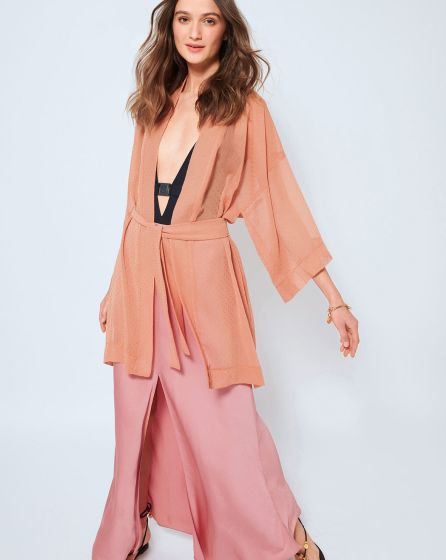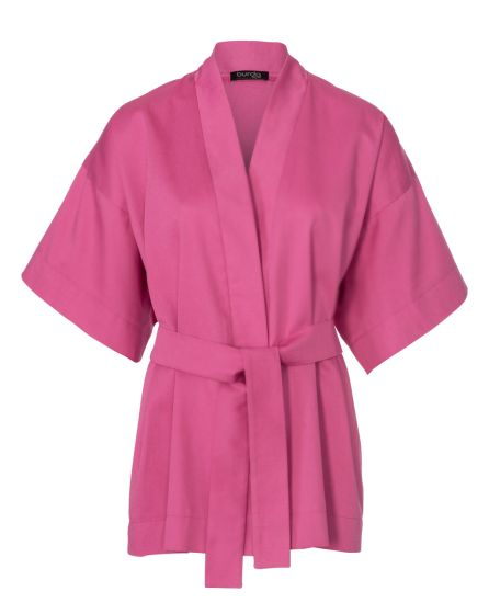 A: Atop a bikini or during the day as a casual blazer alternative: This short, brilliantly coloured kimono with a tied belt is a fashionable all-rounder and easy to combine.