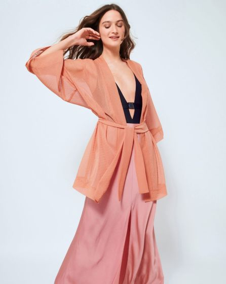 C: A dream-come-true kimono! It could almost be sprinkling fairy dust. But it certainly ensures an extra portion of glamour - whether styled with a silk skirt or jeans shorts.