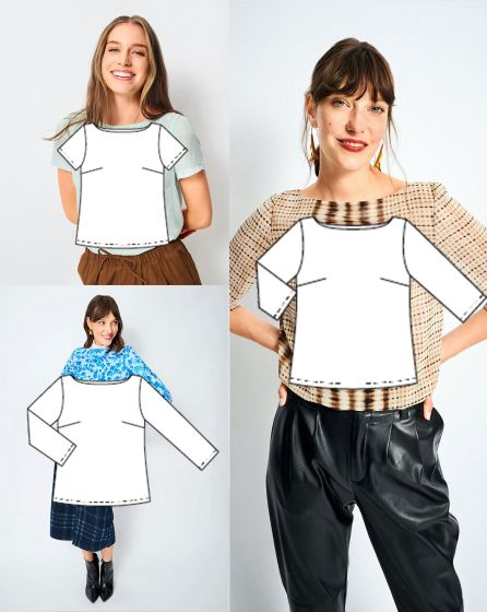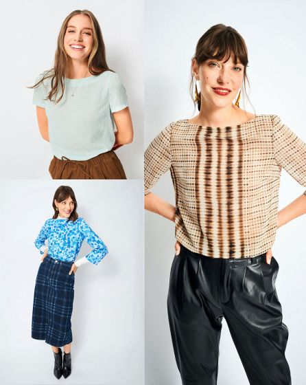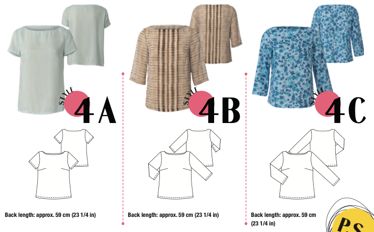 C: It's a look! And what a look... The top in a blue ï¬ oral pattern with 3/4 sleeves looks fabulous with a roll-neck, ankle boots and a pencil skirt, right? The fact that you can sew it in only 12 simple steps is also fabulous!