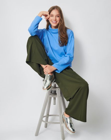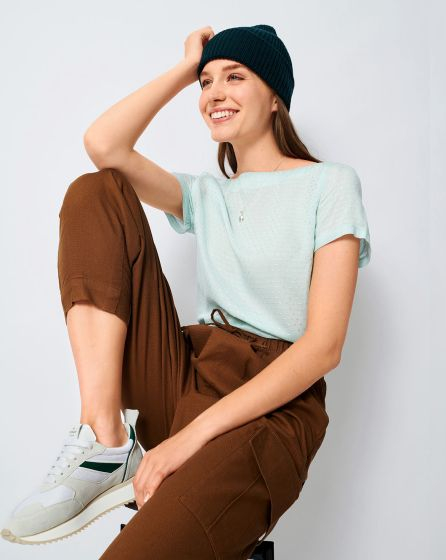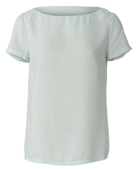 A: The casually elegant alternative to a t-shirt, shirt or blouse: In the short-sleeve version (in mint-coloured poplin with shimmering dots), this airy top is a dream!