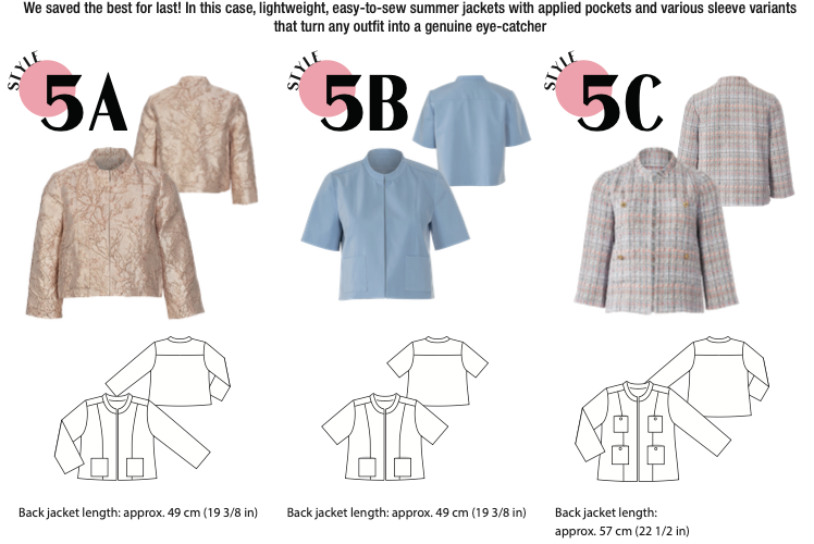 B: The sky's the limit! Be stylish this summer in a lightweight, short-sleeved jacket - be it over a simple white t-shirt (see P. 22) and jeans or a wide dress, de-pending on whether you prefer clean lines or romantic curves.