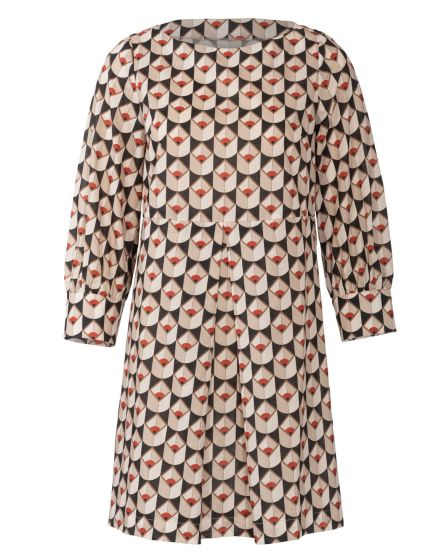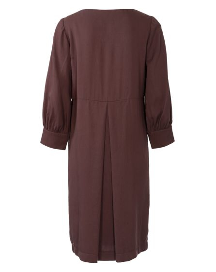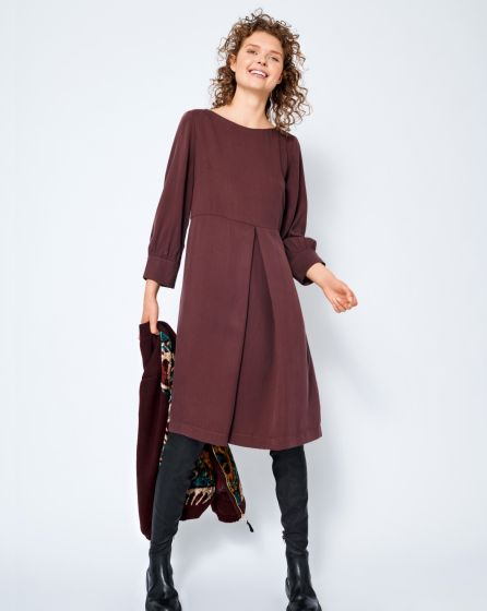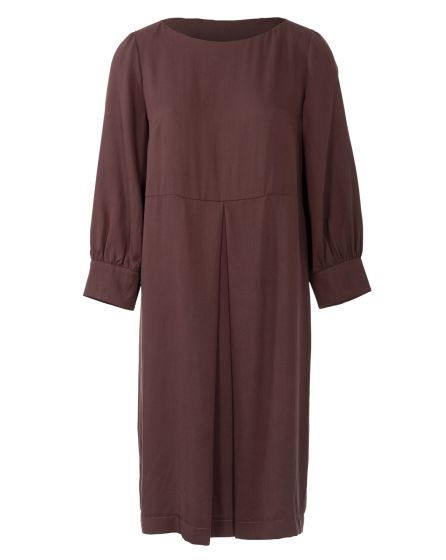 B: Relaxed and clean: The knee-length dress made from mahogany Lyocell has clear lines (and pleats) and a casual, knee-length cut. A real Wow! piece for those who love subtle fashion.