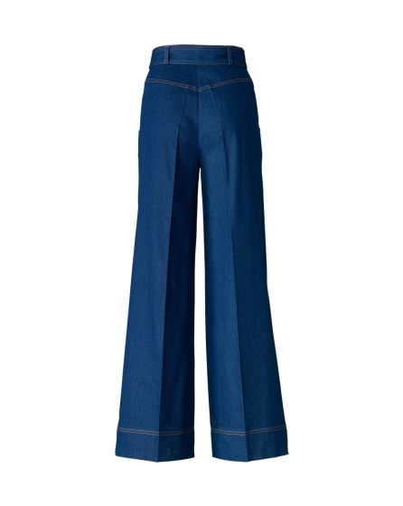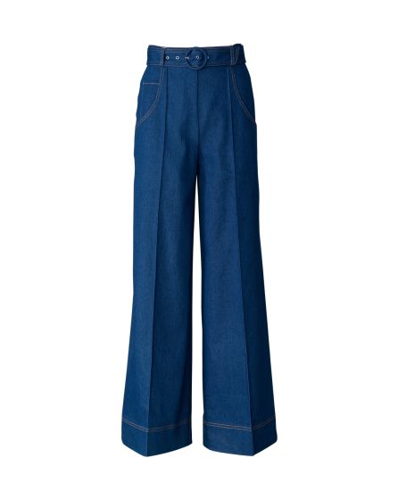 Want a change from skinny jeans? If so, this flared model with a matching belt (even the buckle is covered with denim) and cool topstitched seams is perfect.