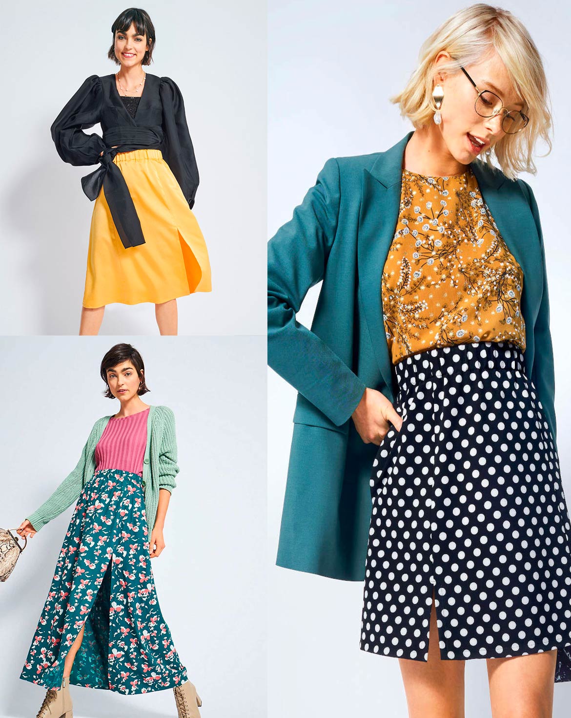 A: Short and fresh! The polka-dot skirt with side pockets is the perfect length for everyone who likes to show their legs and have fun. Completely up to date: the narrow, waist-high A silhouette and a short slit.
