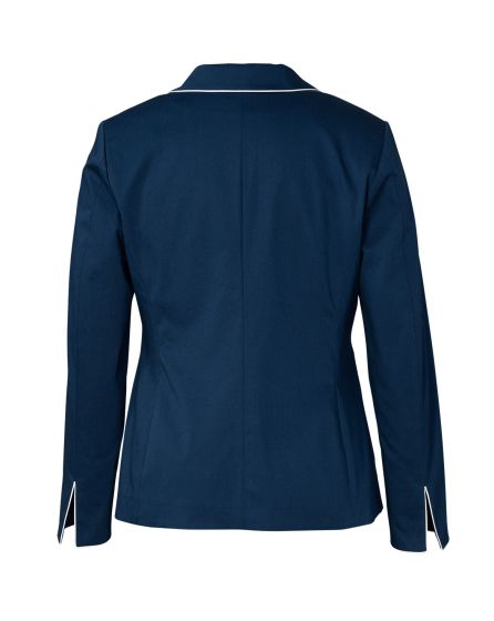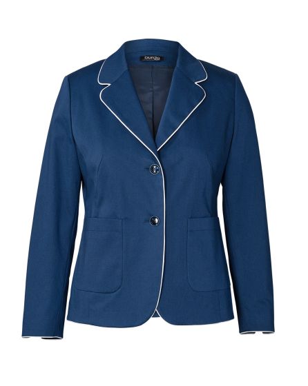 Ooh là là ! The shaped blazer has a classic cut - which makes it a favourite piece for many seasons. It isn't boring, thanks to the piping in a contrasting value and large patch pockets. If you adore wearing suits - trendy!