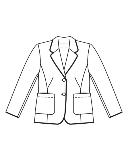 Recommended fabric: Slightly stiff jacket fabric made from cotton or blends. Original fabric: Cotton piqué. Lining.