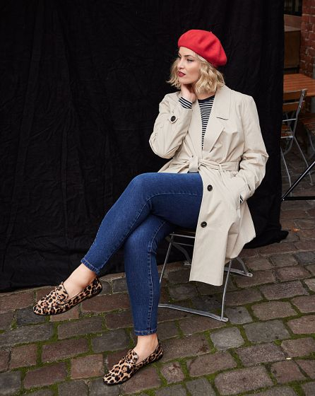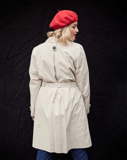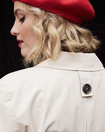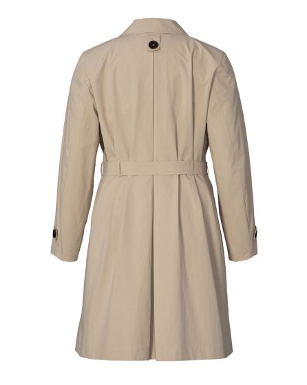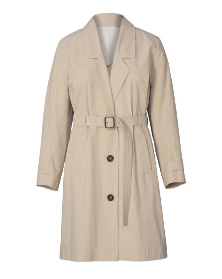 With elongated lapels that frame your curves, flap pockets and a deep inverted pleat at the back: The urban trench coat with buttons in the classic horn look can be worn loose or hug your body, thanks to the tied belt - this guarantees that it will never crush the nice blouse or delicate dress underneath ...