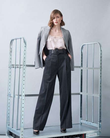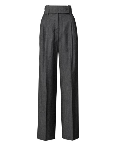 Marlene Dietrich immortalised this masculine trousers shape with pleats, French pockets and crease - no wonder, they are casual and extremely elegant at the same time. By the way: delicate tops like the one here or silk blouses are a perfect match.