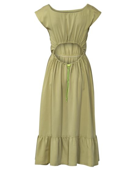 C: Small details that make a big difference: The wide ruffle at the hem and fine Lyocell in a solid colour transform this knee-length cut-out dress (model 3 B) into a romantically elegant, midi-length summer dress that's also perfect for the office.