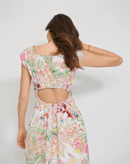 B: Short but not mini - and with a cheerful floral pattern on airy, light poplin: This pretty dress with integrated sleeves will be a fashion hit at the next summer party.