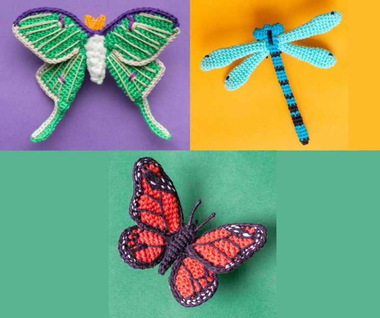 With this bundle, you receive my Monarch Butterfly, Luna Moth and Common Blue Damselfly pattern. They make fun projects for intermediate and experienced crocheters who are not afraid to work with craft wire.