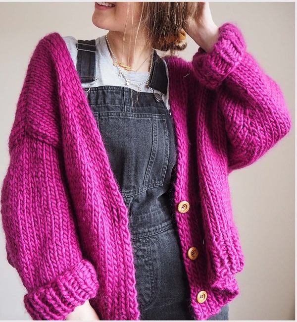 With the optional addition of buttons and pockets it's a real wardrobe staple, It uses a combination of knit & purl stitches with some basic shaping and has additional buttons & pockets should you wish to add them. The pattern has instructions for 3 sizes (S, M & L) and it fits UK size 6-24.