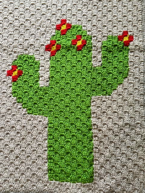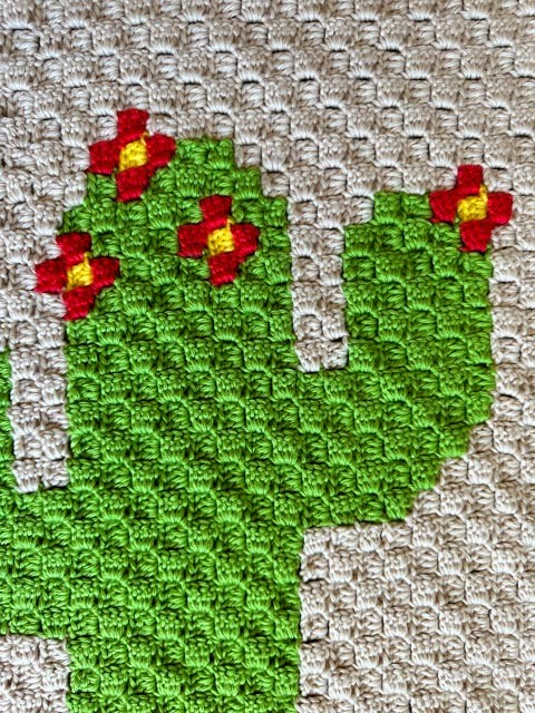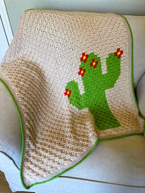 **The Flowering Saguaro Baby Blanket and the Simple Saguaro Baby Blanket are identical except for the flower style and placement. On other platforms, both patterns are included for one price. On Ribblr they are each permanently listed at 50% off the original price : ) **