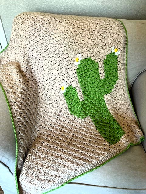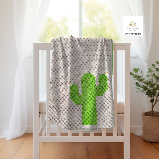 **The Simple Saguaro Baby Blanket and the Flowering Saguaro Baby Blanket are identical except for the flower style and placement. On other platforms, both patterns are included for on price. On Ribblr they are each permanently listed at 50% off the original price : ) **